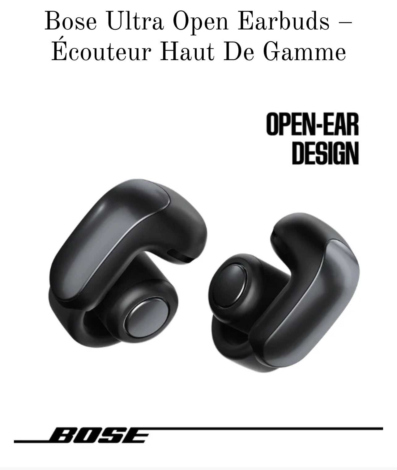 Les Bose Ultra Open Earbuds sont des écouteurs sans fil innovants conçus pour offrir une expérience d’écoute ouverte, permettant aux utilisateurs de rester conscients de leur environnement tout en profitant de leur musique. Cette conception est idéale pour les activités où la perception des sons environnants est essentielle, comme la course à pied ou le cyclisme.